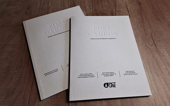 Le choix du papier (circuit court d’approvisionnement), le type d’impression (désencrage) et la finition ont été primordiale afin de privilégier l’éco-conception.